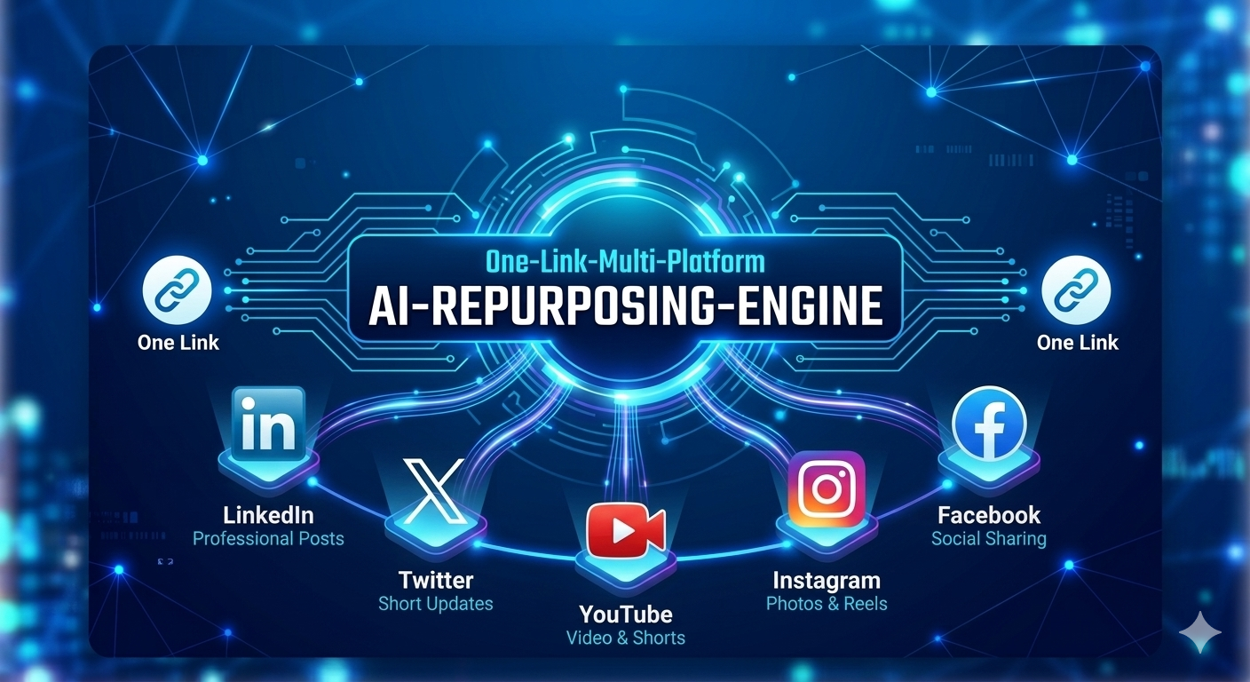 An AI-powered automation system that converts a single video link into ready-to-post content for multiple social media platforms.