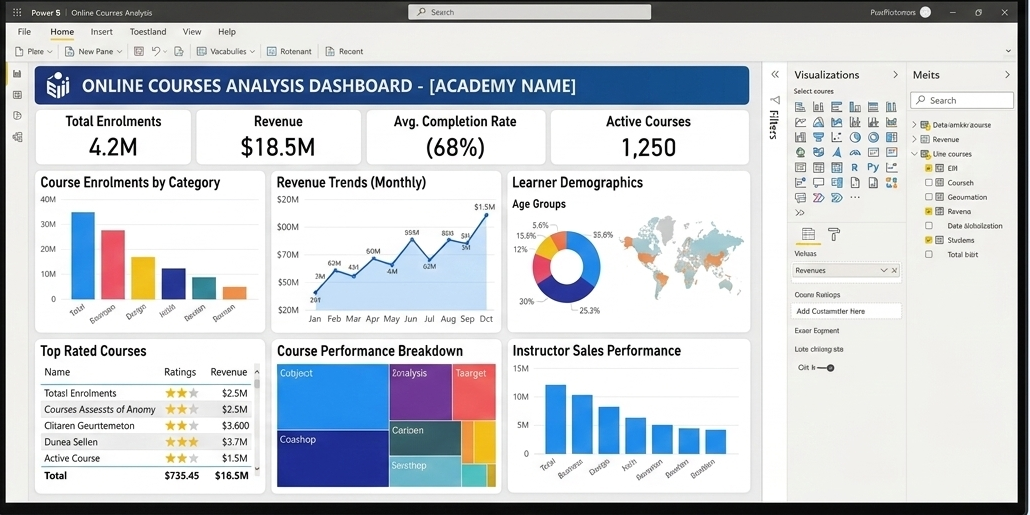 This Power BI dashboard project aims to uncover trends, patterns, and actionable insights from the dataset to support strategic decisions in online education, such as content planning, market positioning, and audience engagement optimization.