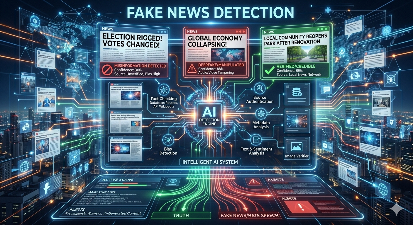 Fake news is a major problem in today's digital world, where misinformation spreads rapidly through social media and online platforms. This project focuses on building a Machine Learning model to classify news articles as Real or Fake based on their textual content.