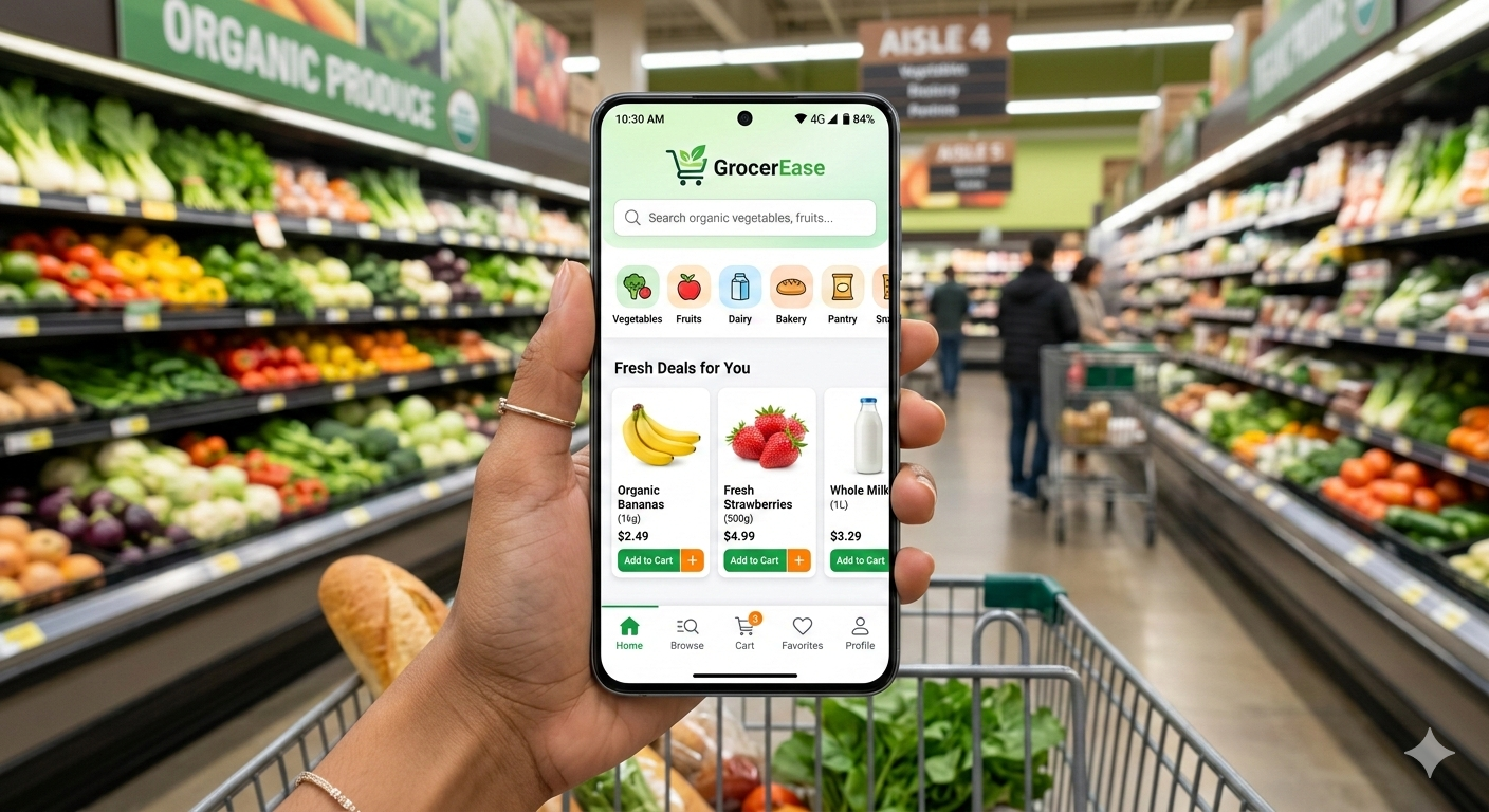 This project is a prototype Android application designed to simulate a modern grocery shopping experience. It focuses solely on frontend functionalities, developed to provide a user-friendly and visually engaging interface without involving any backend or database integration.